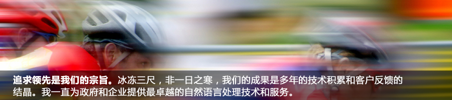 自從成立以來(lái),我們?yōu)榭蛻籼峁└咝Ш椭悄芑男畔⑻幚砉ぞ吆妥稍兎?wù)。在這個(gè)信息爆炸的時(shí)代,如何讓互聯(lián)網(wǎng)上和企業(yè)內(nèi)部的海量信息為我們帶來(lái)更多的價(jià)值需要高度智能化的信息處理工具。我們提供的技術(shù)能夠高效并且準(zhǔn)確的對(duì)大量文本信息進(jìn)行處理、檢索、挖掘、翻譯等工作,并可方便地與信息系統(tǒng)的其他模塊進(jìn)行整合。